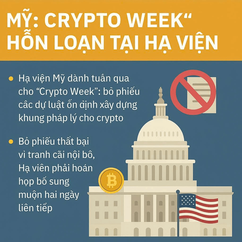 Proposta di legge bloccata: La Camera dei Rappresentanti degli Stati Uniti ha dedicato la settimana scorsa alla “Crypto Week” per approvare proposte di legge per stabilizzare gli stablecoin (GENIUS Act) e per definire se le criptovalute siano beni o titoli (CLARITY Act). Tuttavia, le controversie interne al partito Repubblicano hanno impedito le votazioni. Una votazione procedurale del 15 luglio è fallita, il presidente Trump è intervenuto promettendo di discutere con i legislatori e chiedendo una nuova votazione, ma la votazione successiva del 16 luglio è stata ulteriormente rinviata, e alla fine della giornata la Camera ha anche annunciato un ulteriore rinvio della seduta.