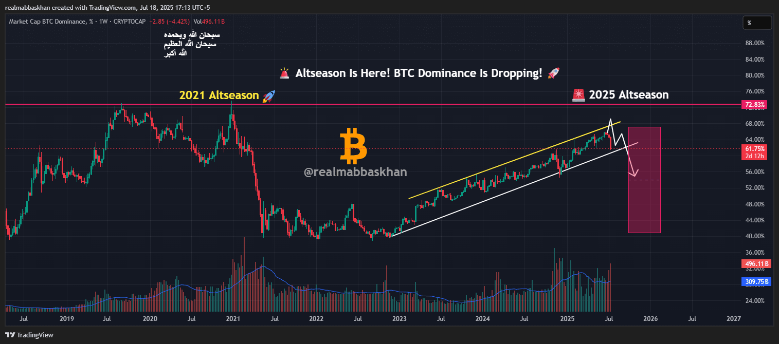 🚀 La stagione degli altcoin è qui, proprio come ti ho detto! La dominanza di BTC sta scendendo! 🔥 Guarda questo! Proprio come ti ho detto la settimana scorsa, la dominanza di BTC sta ora scendendo, e indovina un po'? Questo è l'inizio della stagione degli altcoin! 🎉 Questo è esattamente ciò che stavamo aspettando e sta accadendo proprio ora. Se mi segui da un po', sai che sono sempre un passo avanti. Ora, è il TUO momento di brillare. 🌟
