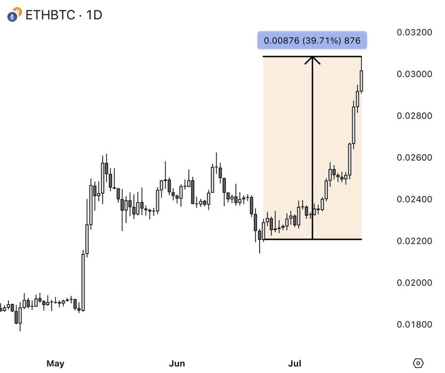 ❍ E questa volta, sta accadendo mentre $BTC (https://x.com/search?q=%24BTC&src=cashtag_click) si ferma e ETH/BTC sale