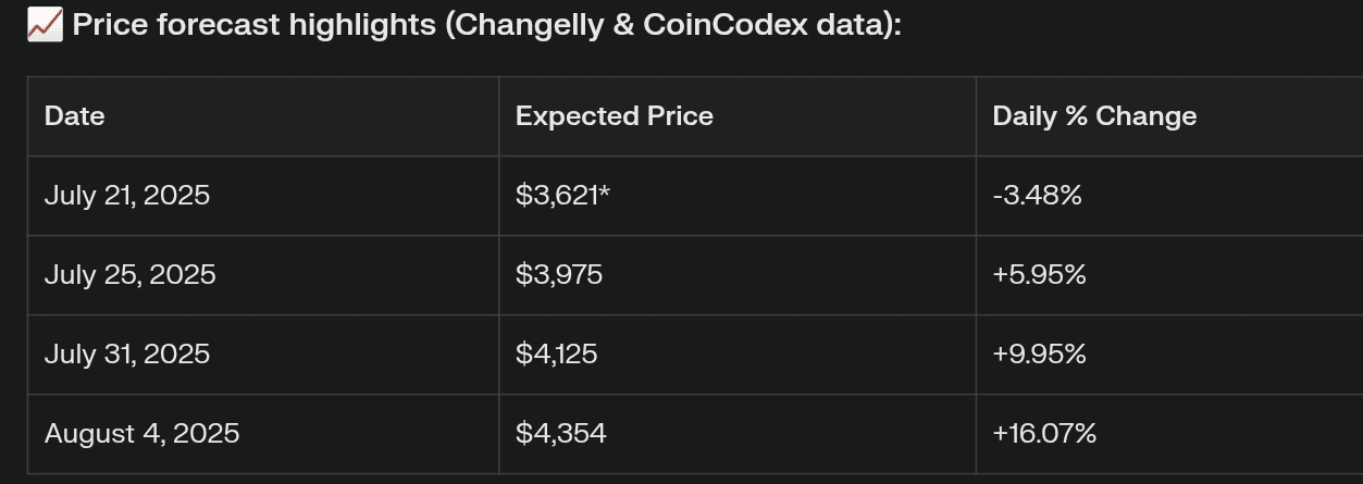 Se il prezzo non riesce a mantenersi sopra $3,600–$3,700, aspettati un possibile nuovo test di supporto vicino a $3,400 prima di riprendere la tendenza rialzista.