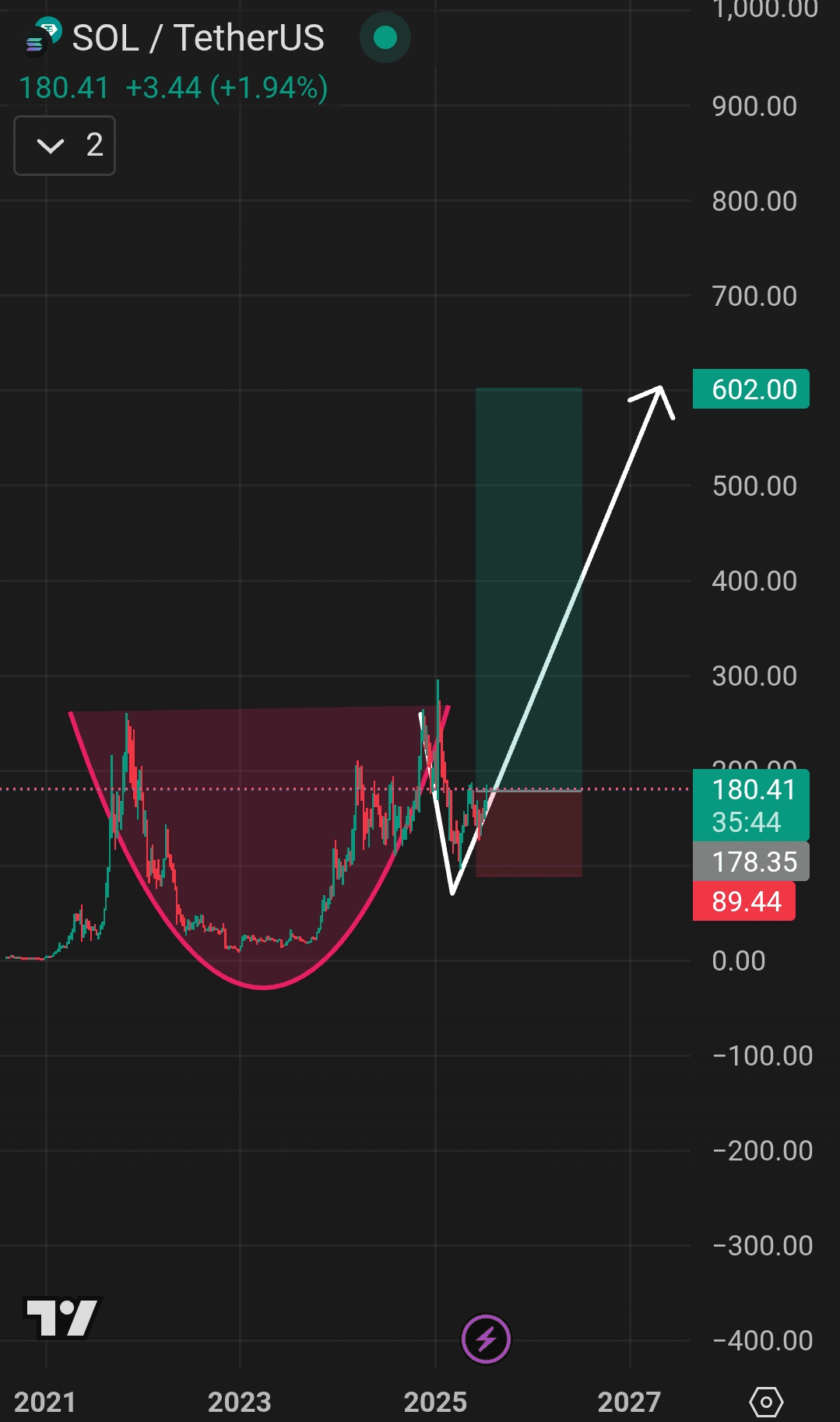 Solana ($SOL ) sta mostrando uno dei pattern tecnici più forti nel crypto — una enorme cup and handle sul timeframe settimanale, segnalando una potenziale rottura che potrebbe portare a guadagni massicci.