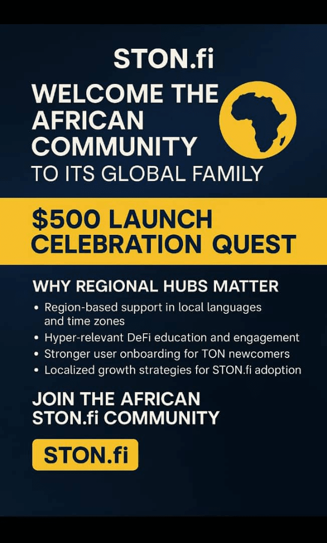 STON.fi continua ad espandere la sua presenza globale con il lancio ufficiale della Community Africana di STON.fi, un hub regionale progettato per dare potere agli utenti TON DeFi in tutta l'Africa.