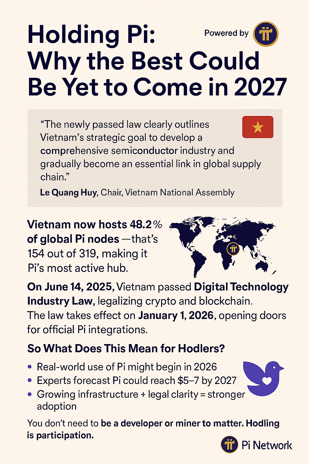 🕰️ Tenere Pi non riguarda solo la fede, ma il tempismo. Con il Vietnam che legalizza le criptovalute ai sensi della Legge sull'Industria della Tecnologia Digitale, l'adozione inizia il 1 gennaio 2026.