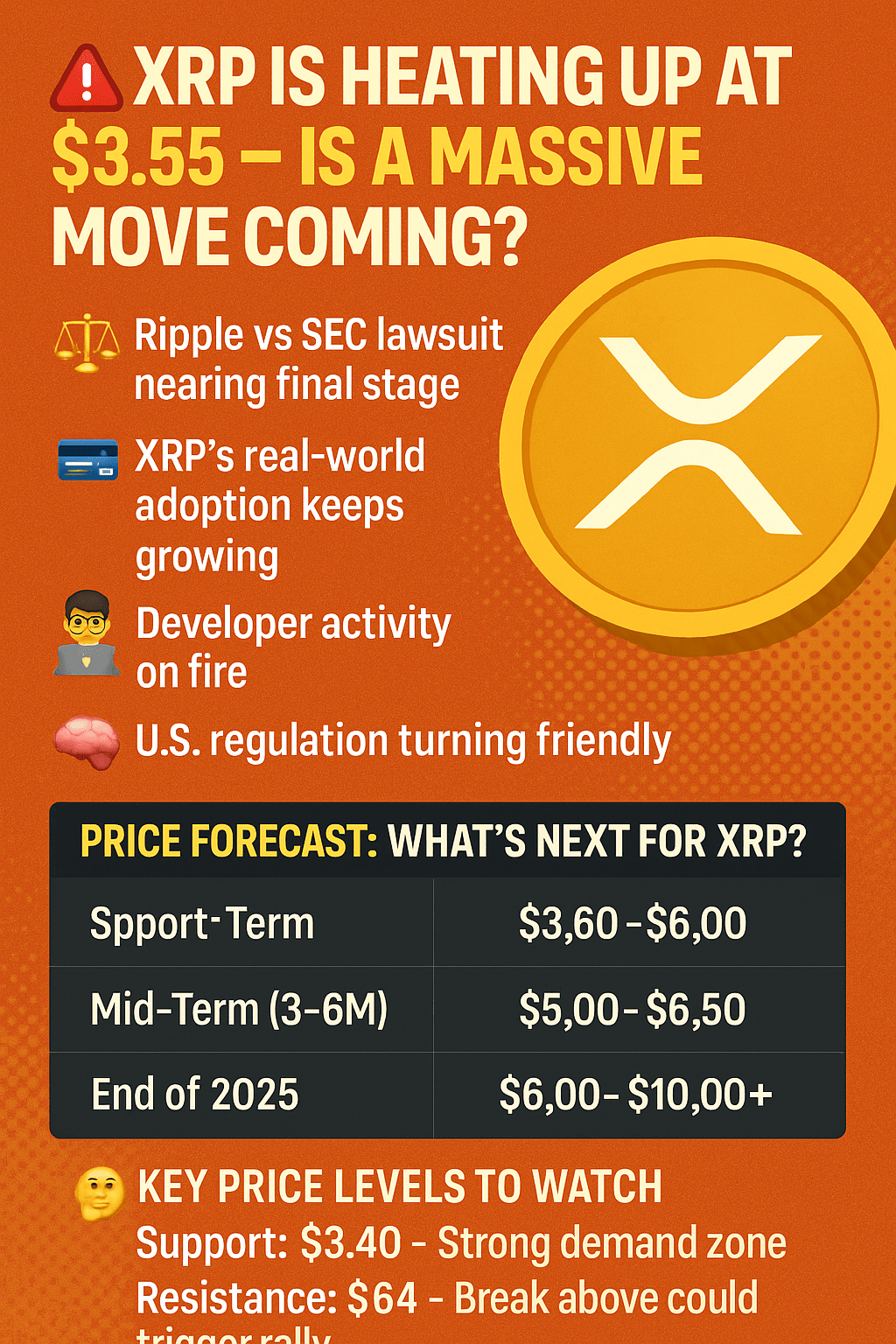 Fine del 2025 $6.00–$10.00+ Adozione di massa + espansione globale di Ripple 🌍