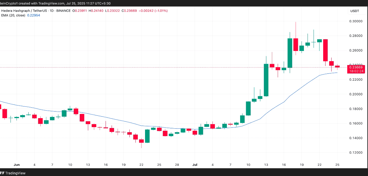 EMA a 20 giorni di HBAR. Fonte: TradingView