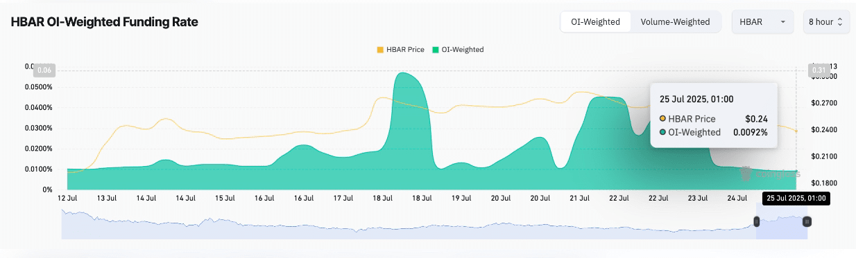 Tasso di finanziamento HBAR. Fonte: Coinglass