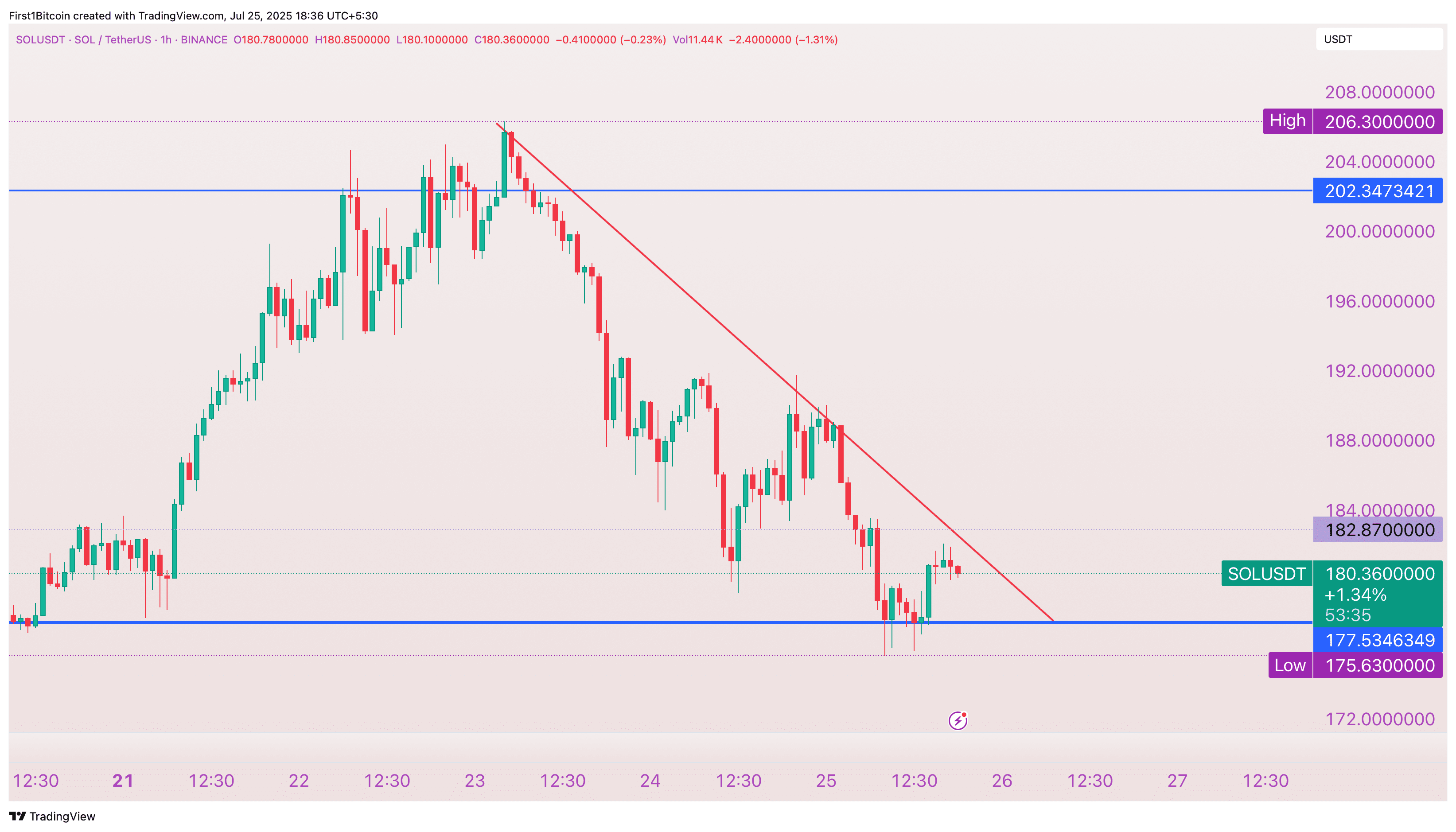 #SOLANA Dopo aver raggiunto una resistenza vicino a $202, Solana è stata in una costante tendenza al ribasso — ma ora mostra segni di un rimbalzo a breve termine dalla zona di supporto di $177.