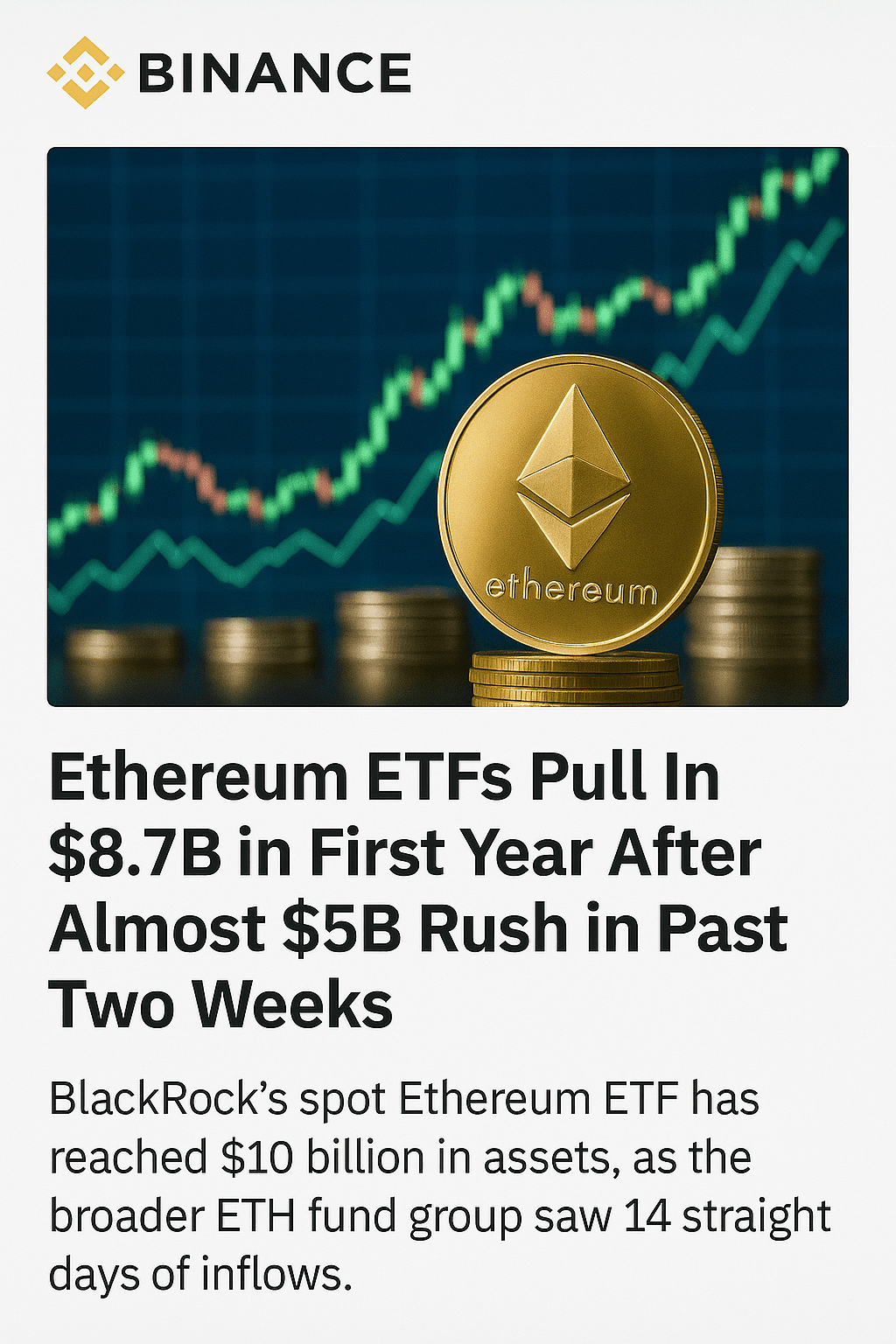 > “Ethereum non è più solo una criptovaluta; è un'intera infrastruttura finanziaria. Gli investitori istituzionali vedono chiaramente il potenziale,” – Khanzo250, Collaboratore di Binance