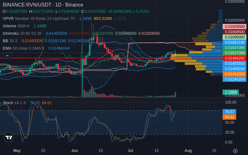 📊 Volume: 1.166B RVN (alto volume in salita. Buona conferma).