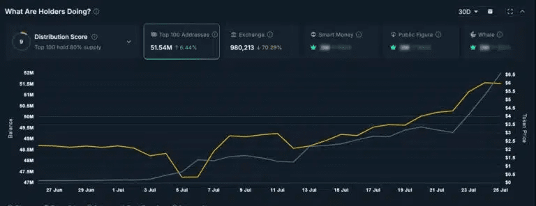 +6,44 % di accumulo da parte delle 100 maggiori indirizzi in 30 giorni