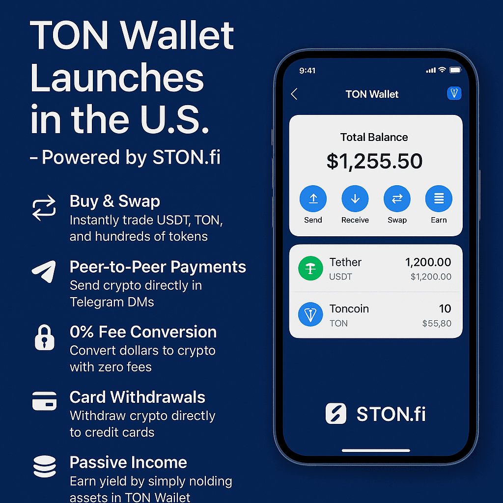 L'ecosistema TON continua la sua rapida espansione con il lancio ufficiale del TON Wallet negli Stati Uniti. Questo importante lancio porta l'accesso DeFi senza soluzione di continuità direttamente agli utenti statunitensi — direttamente all'interno dell'app Telegram.