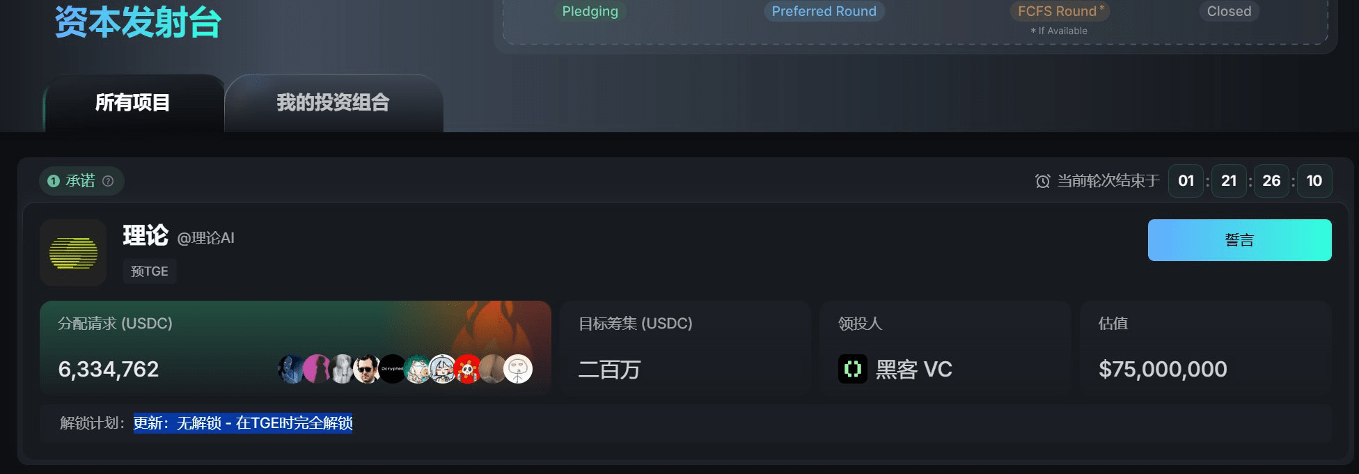 Il meccanismo di sblocco dei token menzionato appena in AMA su Twitter è: 25% sbloccato al TGE, 37,5% sbloccato dopo 12 mesi, il restante 37,5% sbloccato linearmente nei mesi 13-24. E ora, la clausola di appartenenza è stata rimossa dalla vendita della comunità di TheoriqAI, tutte le assegnazioni di token saranno sbloccate al 100% al TGE!