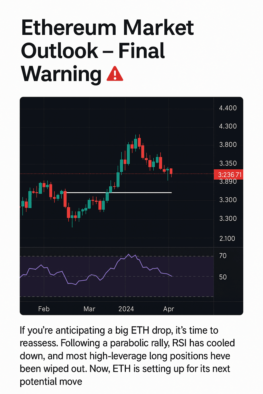 Se prevedi un forte calo dell'ETH,$ETH è tempo di rivalutare. Dopo un significativo rally parabolico, Ethereum ha già subito una correzione sana. L'Indice di Forza Relativa (RSI) si è normalizzato e le posizioni long ad alta leva eccessive sono state efficacemente eliminate dal mercato.