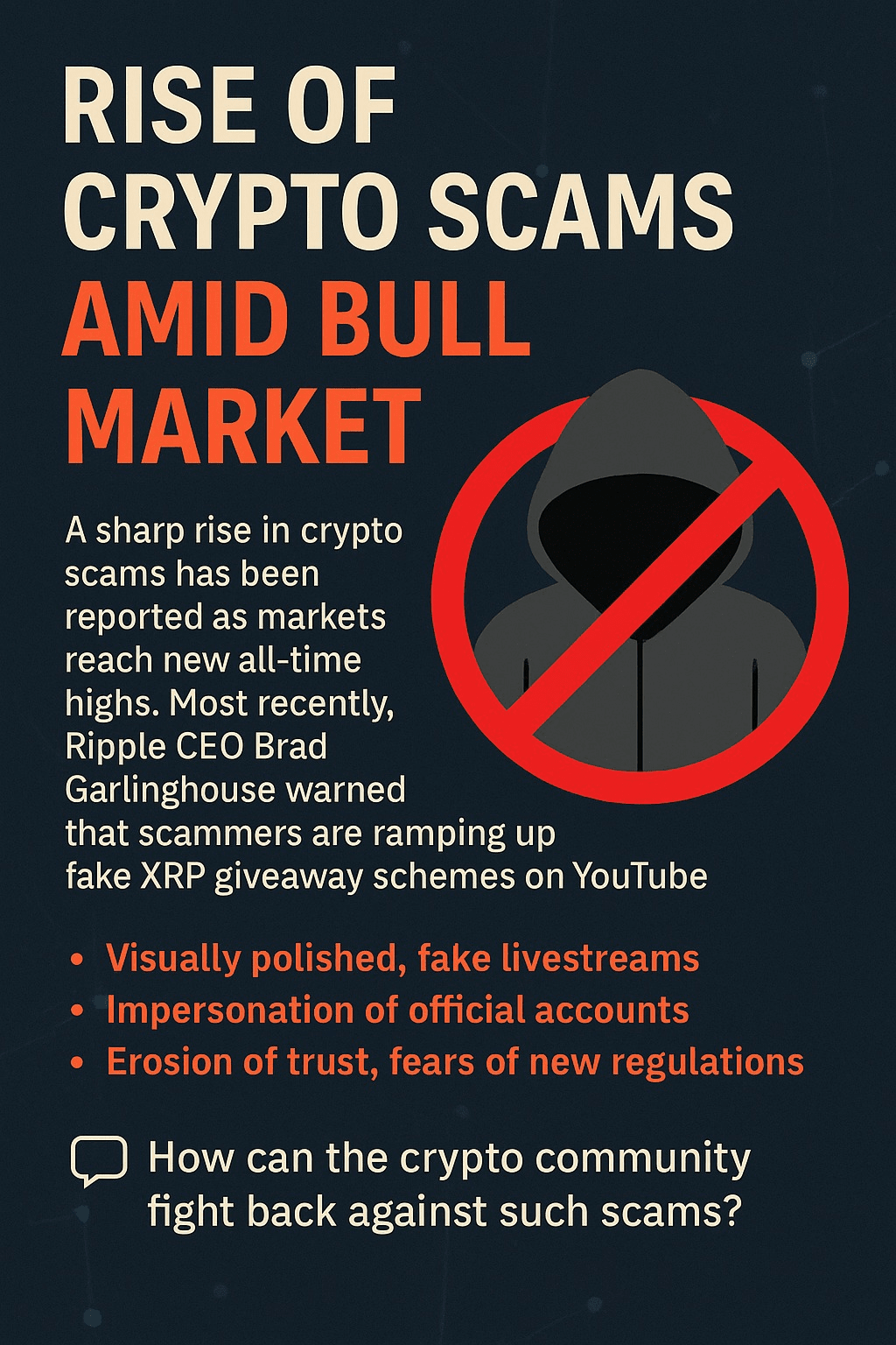 Mentre il mercato delle criptovalute decolla verso nuovi massimi storici, emerge una tendenza parallela e sinistra: un'inasprimento netto delle truffe legate alle criptovalute. In particolare, il ritorno di sofisticate false estrazioni, impersonificazioni e attacchi di phishing sta sollevando segnali di allerta in tutta l'industria.