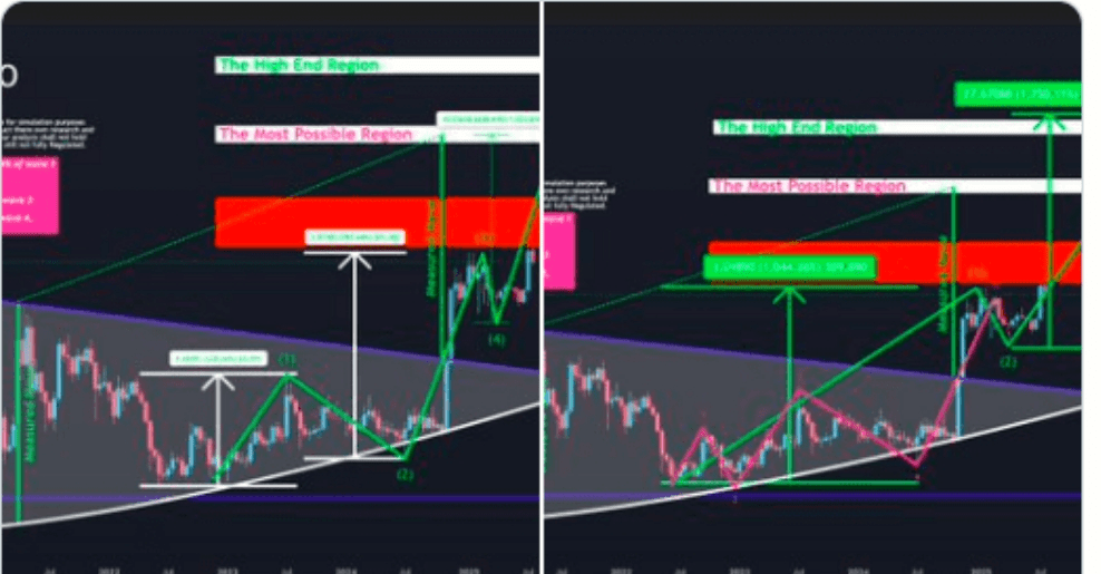 EGRAG ha studiato il grafico a lungo termine di XRP e ha trovato un modello che è iniziato nel 2018, quando XRP ha toccato $3.80. Dopo essere sceso a $0.10 nel 2020, XRP ha lentamente iniziato a riprendersi e ora sta ricostruendo slancio.