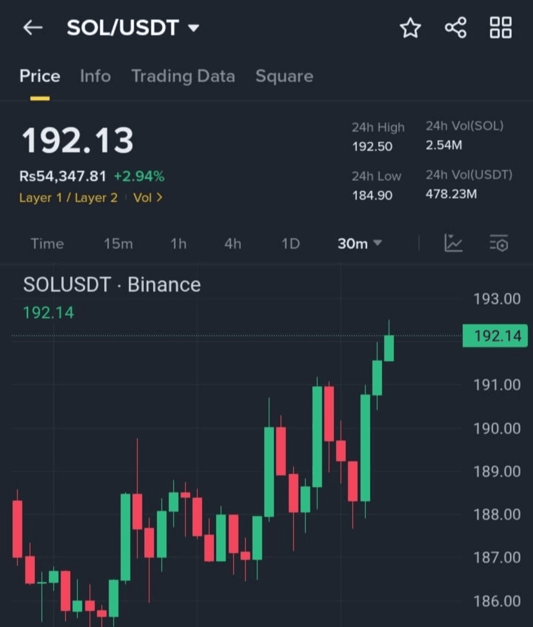 💡 Suggerimento: Aspetta una chiusura solida della candela sopra $193.00 — una volta che Solana supera un livello chiave, non sembra