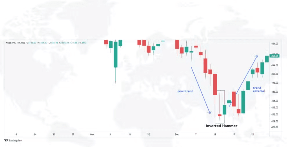 🔹Il pattern di candela martello invertito è un pattern a candela singola che si forma tipicamente dopo una tendenza al ribasso. Il martello invertito ricorda il pattern di candela martello, ma con un aspetto capovolto.