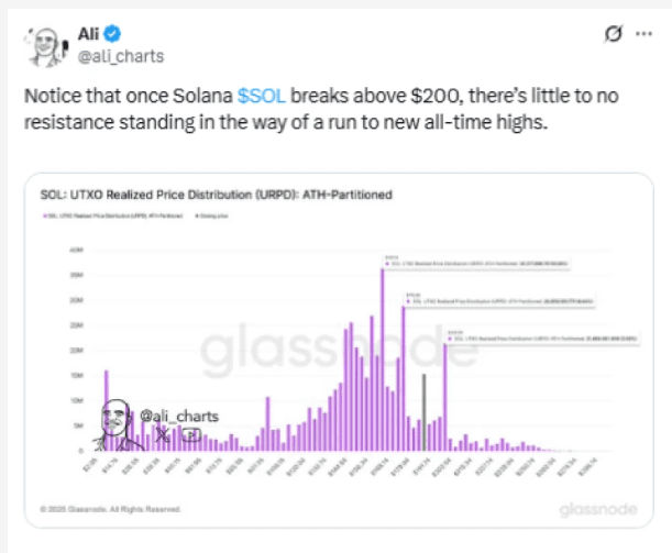 Quando le istituzioni iniziano a accumulare in questo modo, di solito significa che c'è qualcosa in atto. Gli analisti crypto dicono che una volta che SOL supera i 200 dollari, c'è praticamente un percorso chiaro verso 250 dollari perché la maggior parte della pesante resistenza si trova sotto quella soglia dei 200 dollari.