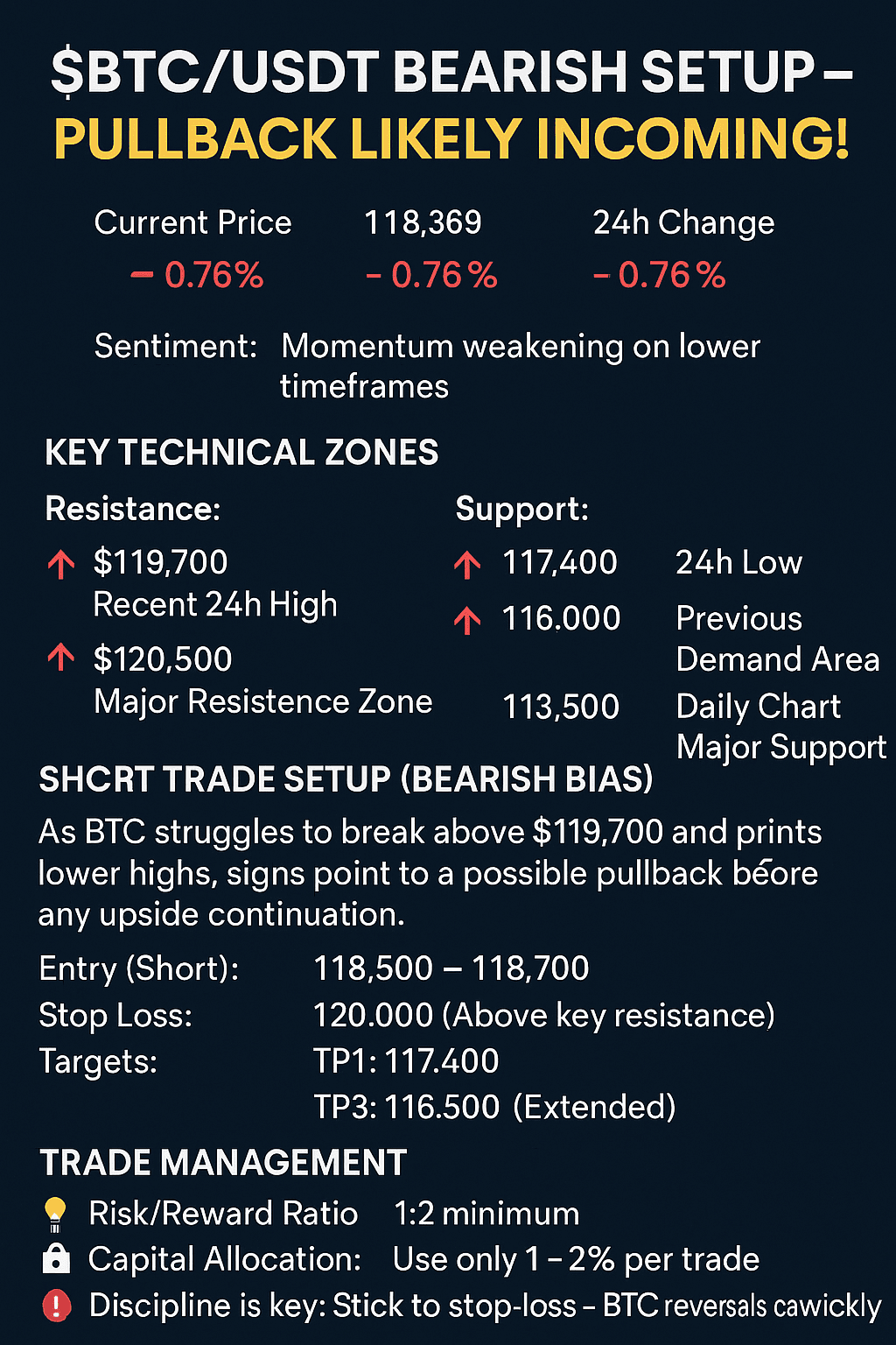 ๐ธ Entrata (Short): $118,500 โ $118,700