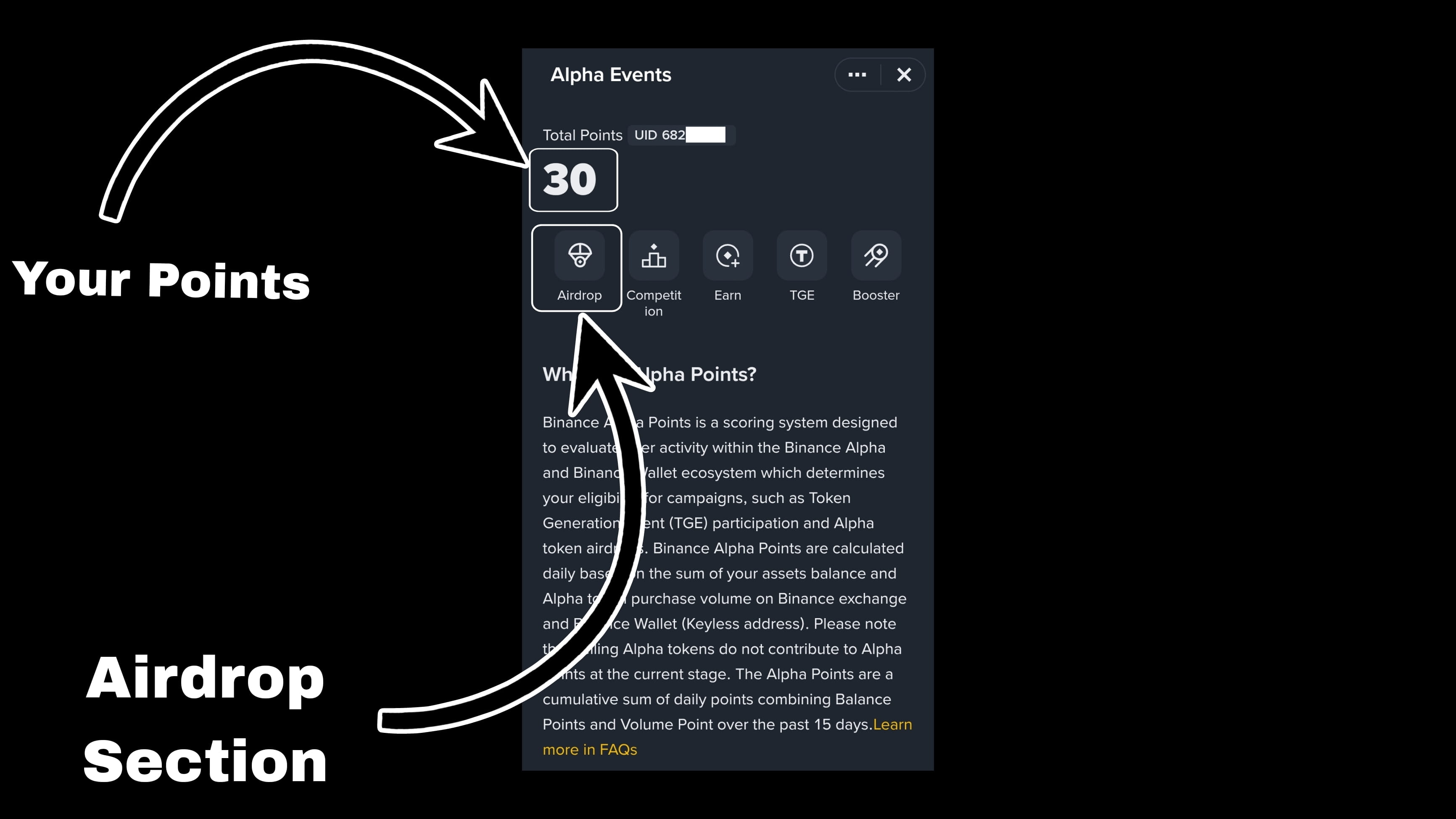 Per partecipare e vincere questi airdrop, devi solo collezionare Alpha Points all'interno di Binance.