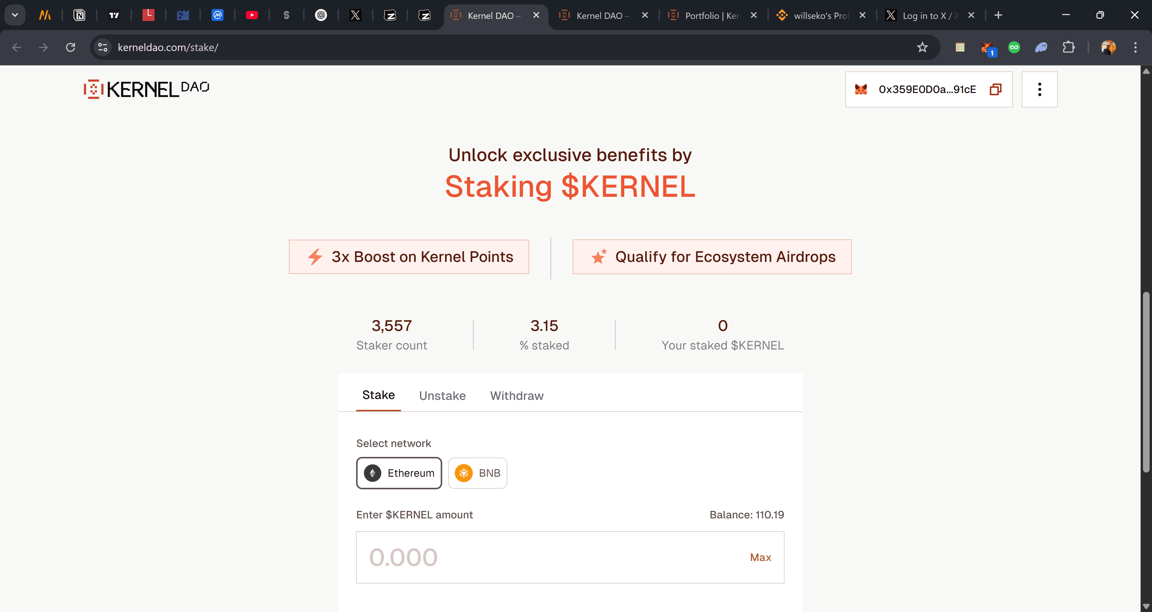 Passo dopo Passo: Staking di kernel con KernelDAO