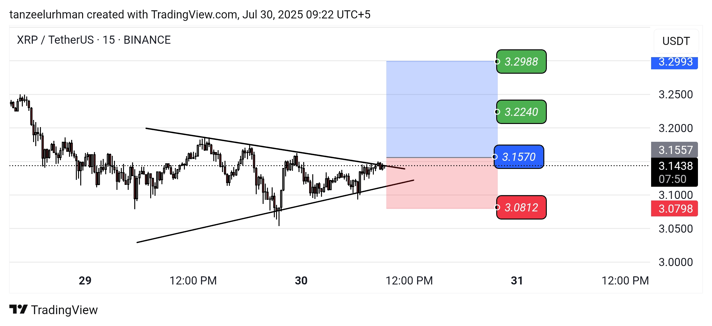$XRP Un pattern di pennant rialzista si sta formando sul timeframe a 15 minuti di XRP. Questo pattern di solito riflette una direzione positiva nel mercato e suggerisce che i prezzi potrebbero aumentare. Se il mercato rompe questo pattern verso l'alto, potrebbe portare a un'opportunità di acquisto potenziale. In una situazione del genere, quando i prezzi si muovono nella direzione ascendente del pattern, puoi cercare di entrare al momento del retest, che potrebbe rivelarsi redditizio per il tuo investimento. Tuttavia, è importante tenere conto anche delle attuali condizioni di mercato e di altri indicatori tecnici, affinché le tue decisioni di trading siano efficaci e tu possa realizzare profitti.