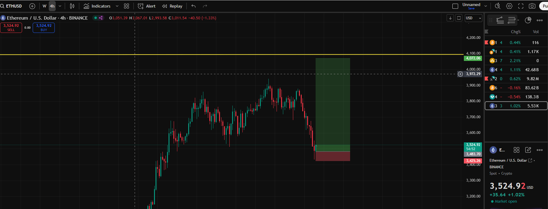 Se il mercato rimbalza, ETH tenderà a tornare a testare una forte resistenza intorno a 4.072 USD; questa è l'opportunità per ottenere profitti molto elevati.