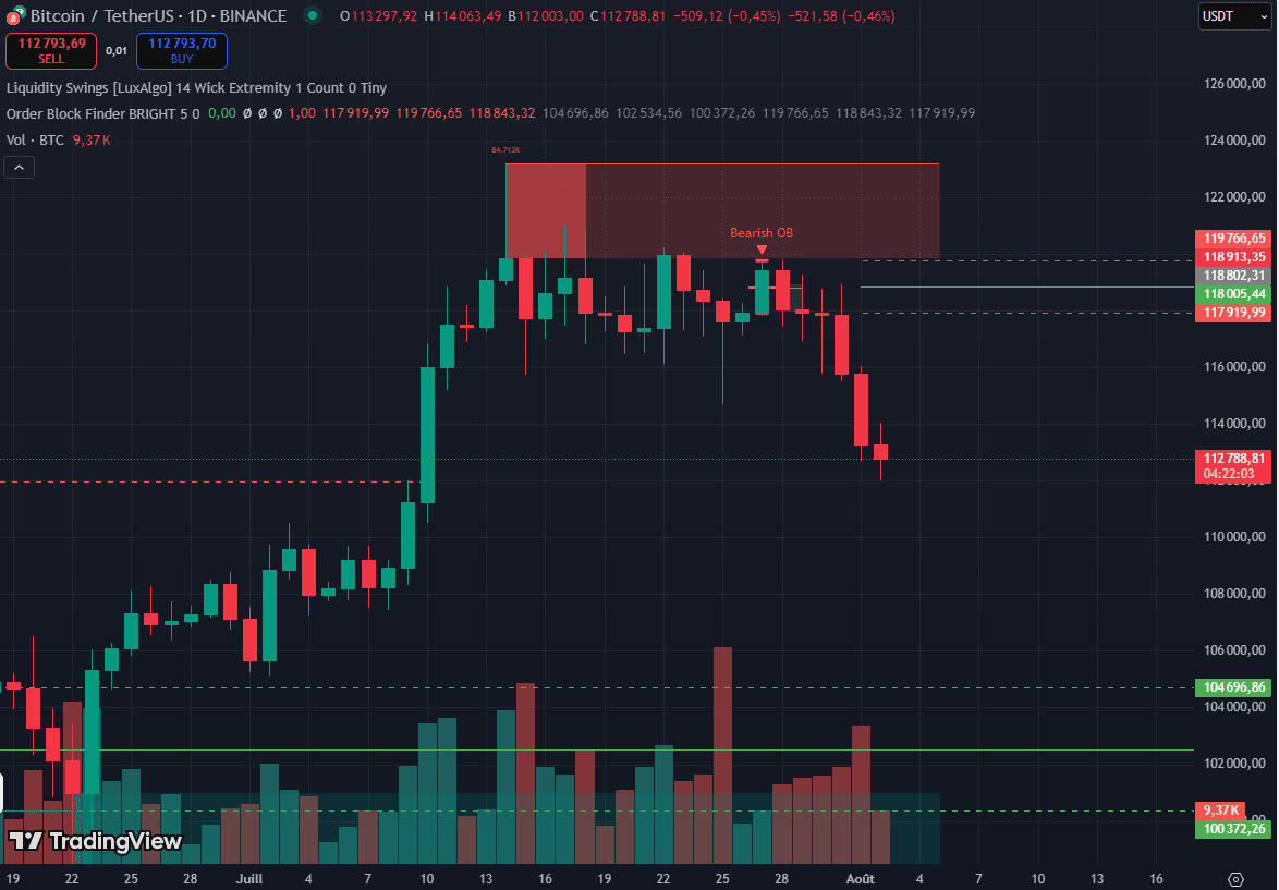 Un forte OB ribassista si sta formando nell'area [118K–124K].