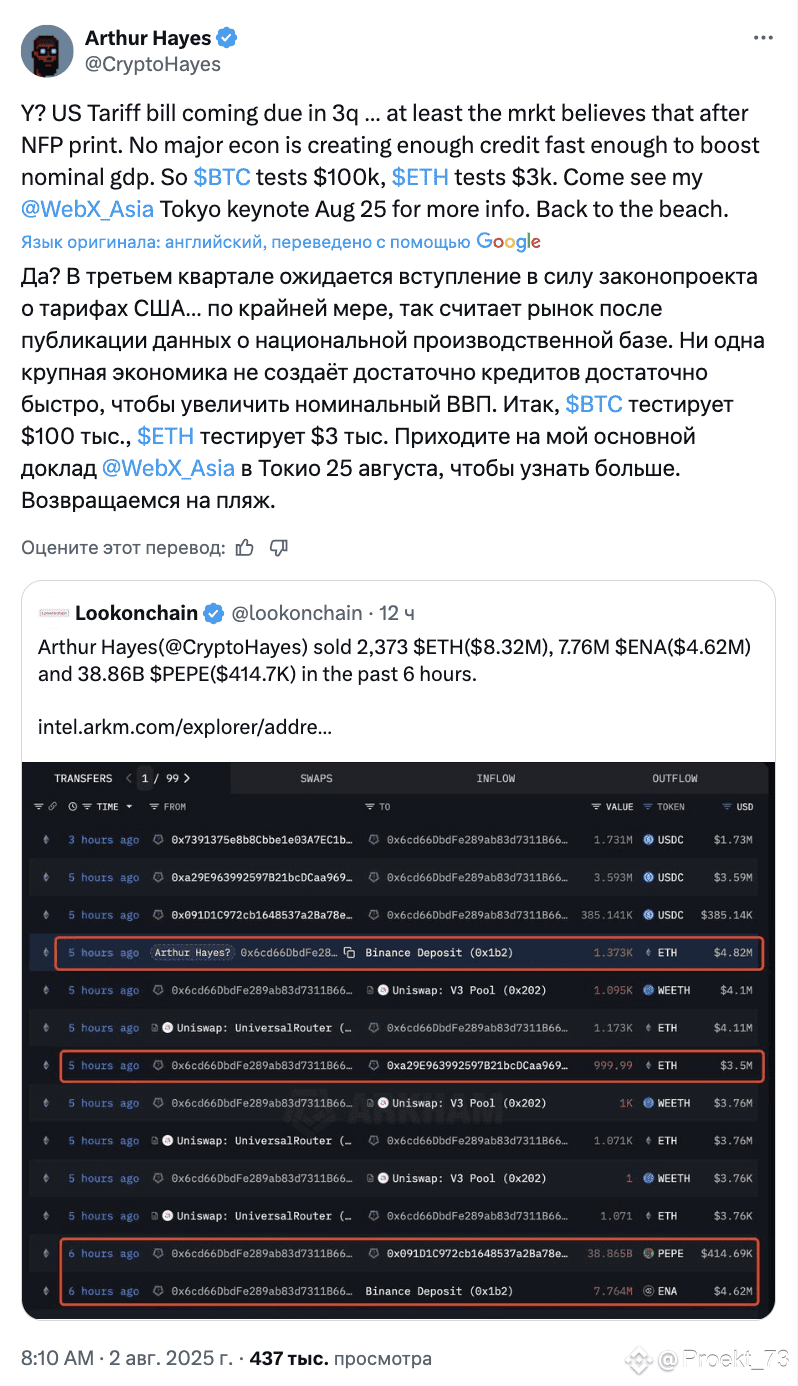 Famoso trader ed essayist nel mercato delle criptovalute, ex-CEO #Bitmex e gestore di un fondo familiare #Maelstrom , secondo i dati di #Lookonchain, sta vendendo altcoin. Ha scaricato 7,76 milioni #ENA , 2.373 #ETH . Ha inviato in borsa 38,86 miliardi #PEPE .