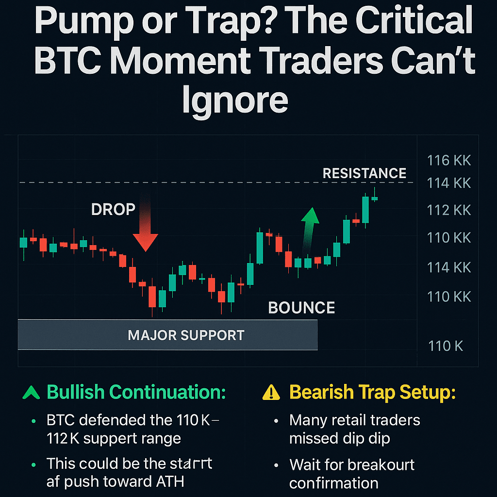 Dopo diversi giorni di azione laterale, BTC è sceso bruscamente da ~$112K verso $110K, trascinando gli alts in una svendita da panico. I trader al dettaglio hanno venduto per paura — ma i soldi intelligenti hanno comprato silenziosamente il calo, riportando BTC a ~$115K.