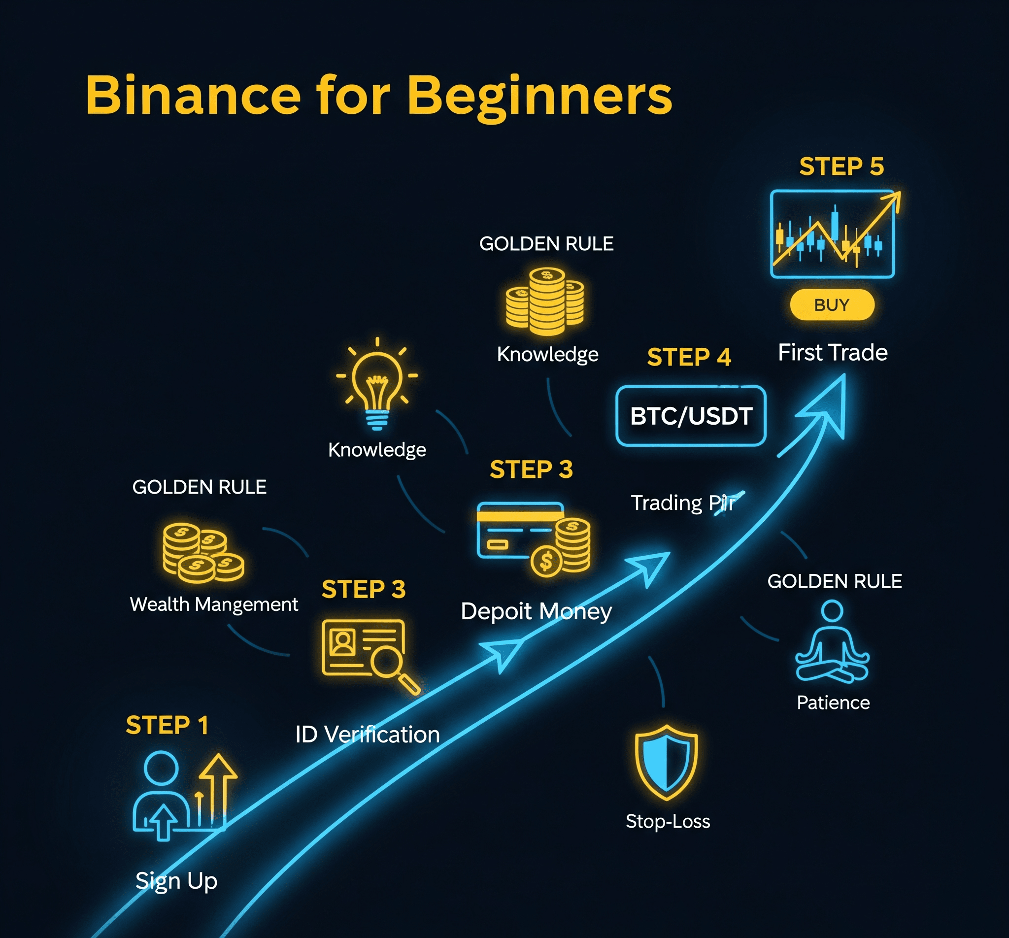 Registrazione → Verifica → Deposito → Scelta coppia → Primo trade → Pazienza = Successo!