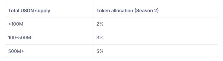 La seconda stagione sarà basata sul TVL di $USDN per determinare la quantità finale di distribuzione dei token, come mostrato nella figura seguente: