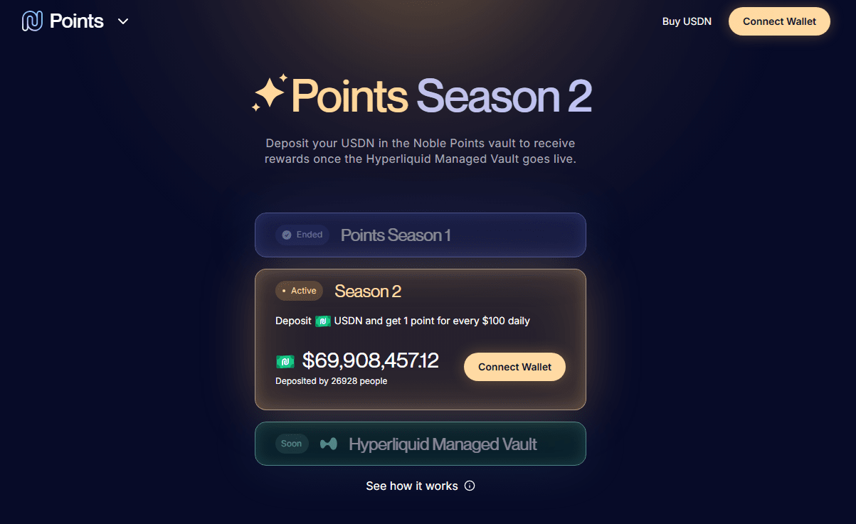 Secondo l'annuncio, Noble prevede di utilizzare un modello di tesoreria per allocare i fondi degli utenti a HyperEVM, inclusi: HyperrFi, Hyperbeat, Hyperlend.