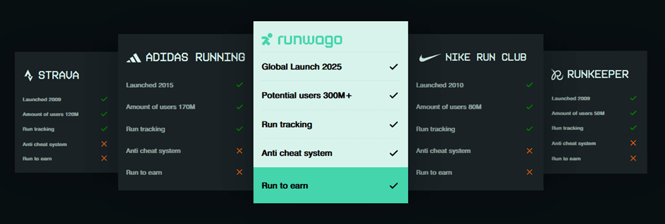 Runwago è un'applicazione SportFi per la corsa che è in sviluppo da due anni ed è ora pronta, con il lancio previsto nelle prossime settimane. Un grande vantaggio è il suo supporto per i corridori sia Web3 che Web2. L'app è progettata per attrarre le masse, mirando fino a 300 milioni di corridori in tutto il mondo.