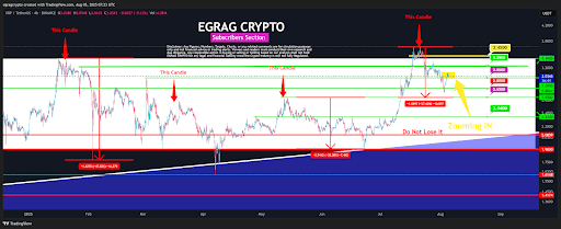 Detto ciò, il livello più critico da proteggere per i tori è $2.80, che è la quarta cosa chiave da tenere d'occhio. Secondo l'analista, chiudere di nuovo sotto $2.80 minerebbe la struttura rialzista e potrebbe causare un momentum al ribasso. Pertanto, mantenere questa soglia è cruciale per preservare il momentum rialzista.