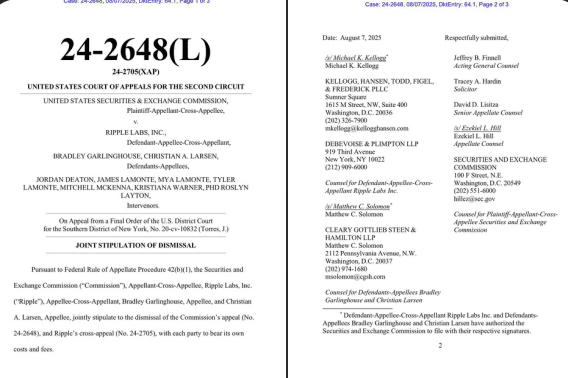 Secondo il rapporto di Cointelegraph. Entrambi i lati hanno presentato documenti congiunti per confermare il ritiro della causa SEC e la contestazione di Ripple, che rappresenta una chiusura significativa nella conduzione del caso riguardante XRP, l'attività digitale di Ripple.