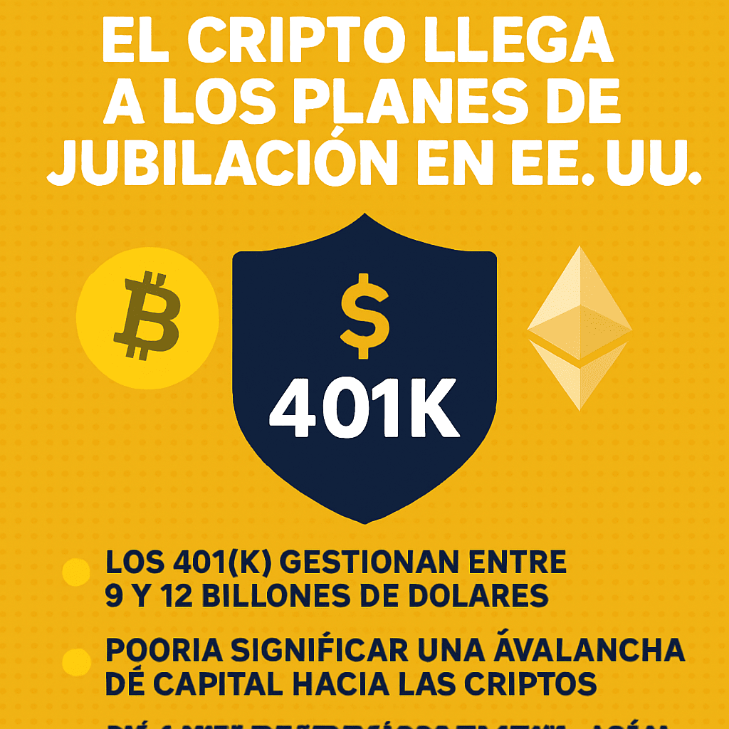 Il 7 agosto 2025, il presidente Donald Trump ha firmato un'ordinanza esecutiva che potrebbe consentire ai piani pensionistici 401(k) di includere investimenti in criptovalute come Bitcoin o Ethereum, oltre ad altri attivi alternativi come il capitale privato e immobiliare. La misura incarica il Dipartimento del Lavoro e la SEC di rivedere le normative attuali per facilitare questa inclusione.