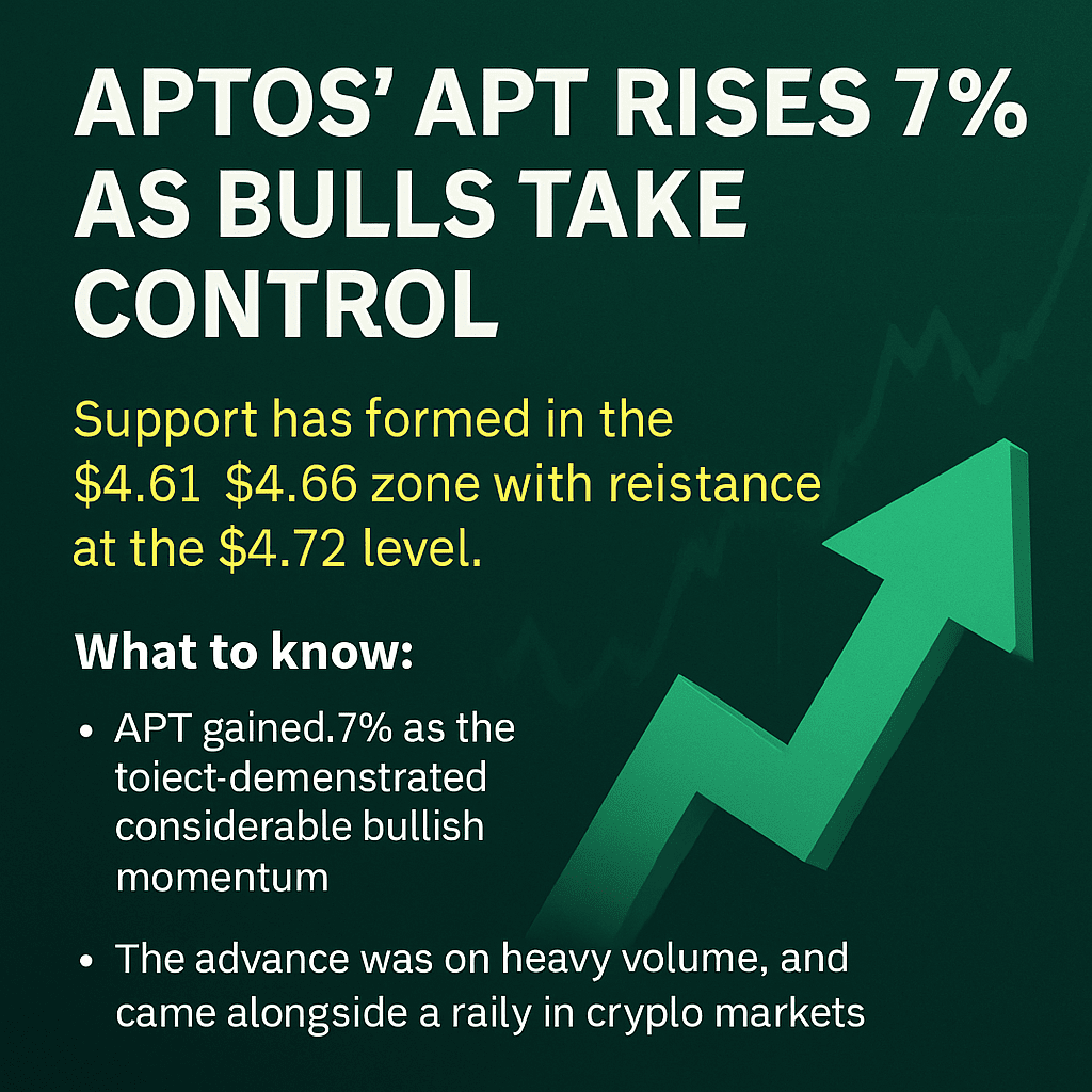 $APT ha registrato un forte rally del 7% nelle ultime 24 ore, passando da $4.34 a $4.62, sostenuto da un elevato volume di scambi e da un solido slancio rialzista nel mercato crypto.