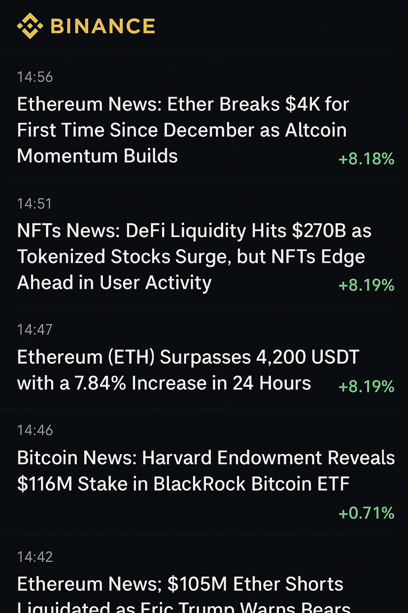 Notizie su Ethereum: Ether ha ufficialmente superato la soglia dei 4.000 dollari per la prima volta da dicembre, aumentando grazie a un forte slancio delle altcoin. Nelle ultime 24 ore, ETH ha guadagnato +8,18%, segnando una rinnovata fiducia nel mercato.