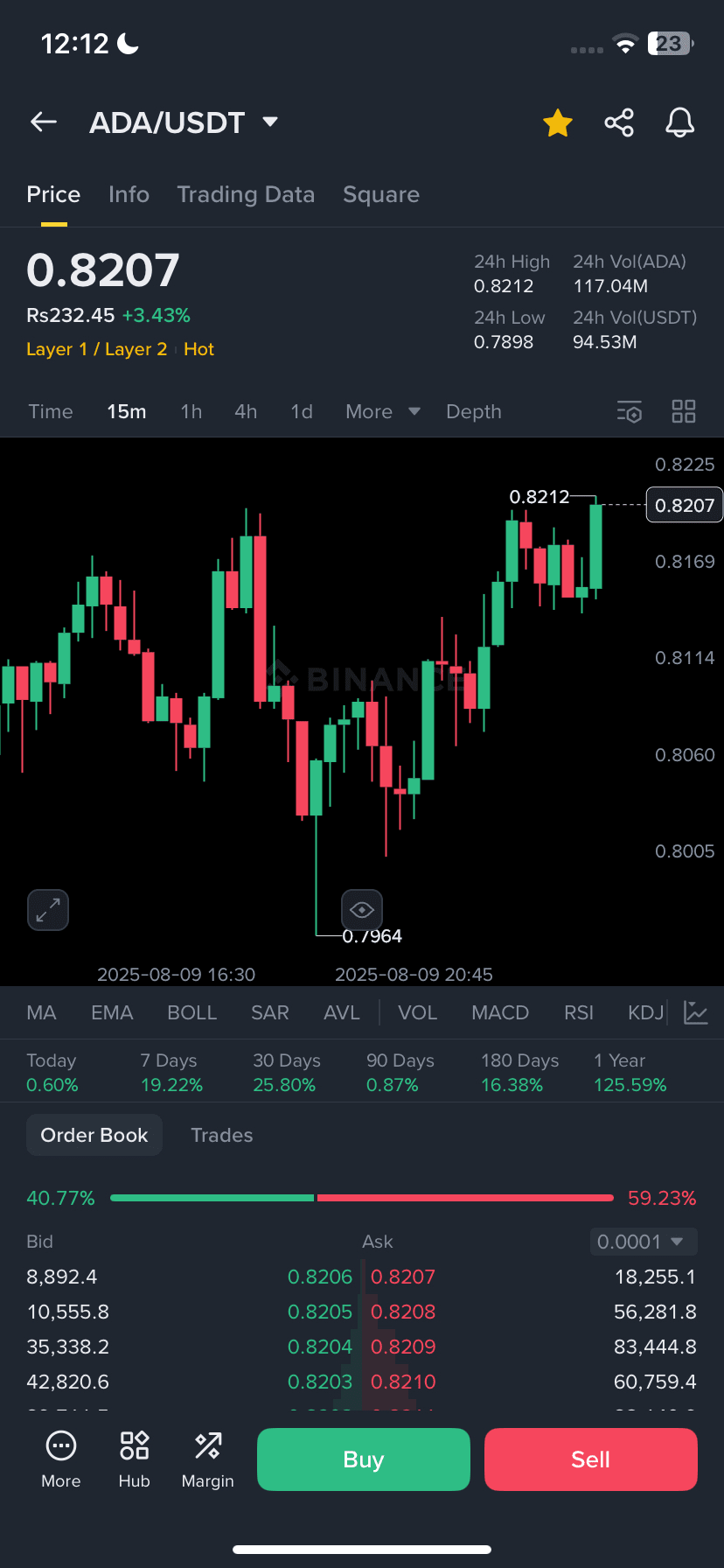$ADA Estende i guadagni dei tori obiettivo $0.86 Prossimo...$ADA sta negoziando a $0.8175, in aumento del +3.06% oggi, continuando il suo recupero dalla recente zona di $0.77. Un forte volume di acquisti ha spinto il prezzo verso la resistenza di $0.8205, e una rottura potrebbe portarlo a $0.8647 e $0.9373. Il supporto si trova a $0.7898–$0.7700, mantenendo intatto il momentum rialzista. Impostazione del Trade:Entrata: $0.8150 – $0.8200Stop Loss: $0.7900Obiettivi: $0.8205, $0.8647, $0.9373acquista e commercia