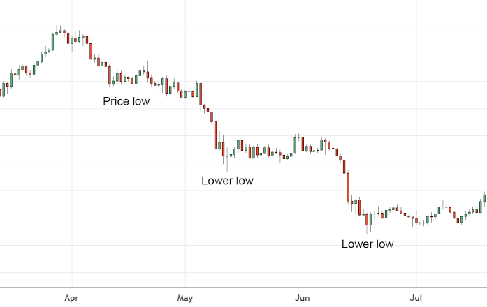 Un trend al ribasso è caratterizzato da una serie di massimi e minimi decrescenti.