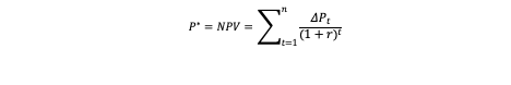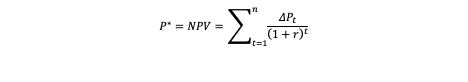 Scontando e sommando ogni anno ΔPt a un tasso di sconto fisso (come il 10%), si ottiene il valore attuale totale dell'aumento di valore, ovvero il prezzo teorico del token: