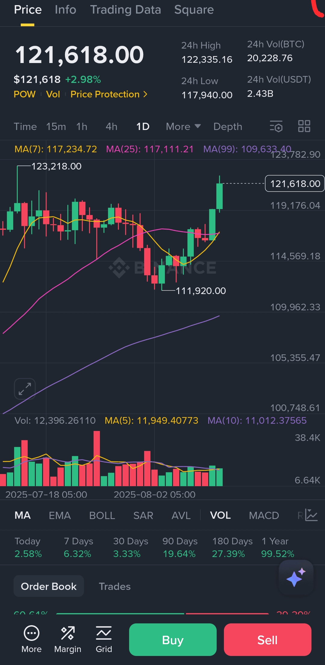 Bitcoin $BTC sta vivendo una forte fase rialzista da agosto 2025, con il suo prezzo che si consolida vicino a $118.000. Questo aumento è guidato da una combinazione di sentiment di mercato positivo e una maggiore partecipazione sia da investitori al dettaglio che istituzionali. Il periodo estivo, che spesso vede un'attività di trading ridotta, non ha rallentato lo slancio di Bitcoin, indicando una robusta domanda sottostante.