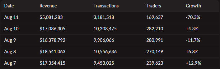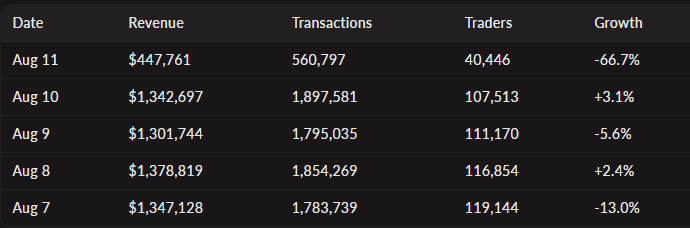 Nonostante le commissioni più basse (0,25% contro 1,0%), le entrate di PumpSwap nelle ultime 24 ore hanno raggiunto 12,6 milioni di dollari, mentre pump.fun solo 1,2 milioni di dollari, dominando la generazione di entrate. Le entrate totali negli ultimi 7 giorni ammontano a 110,9 milioni di dollari, di cui PumpSwap ha contribuito con il 94% grazie a un volume di transazioni enorme.