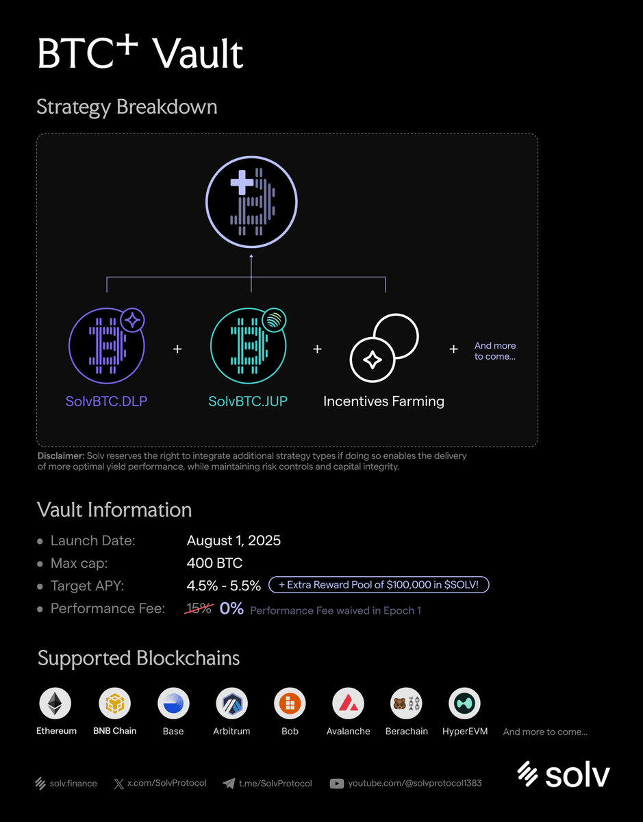 BTC+ Vault (nuovo prodotto di rendimento automatico lanciato da Solv)