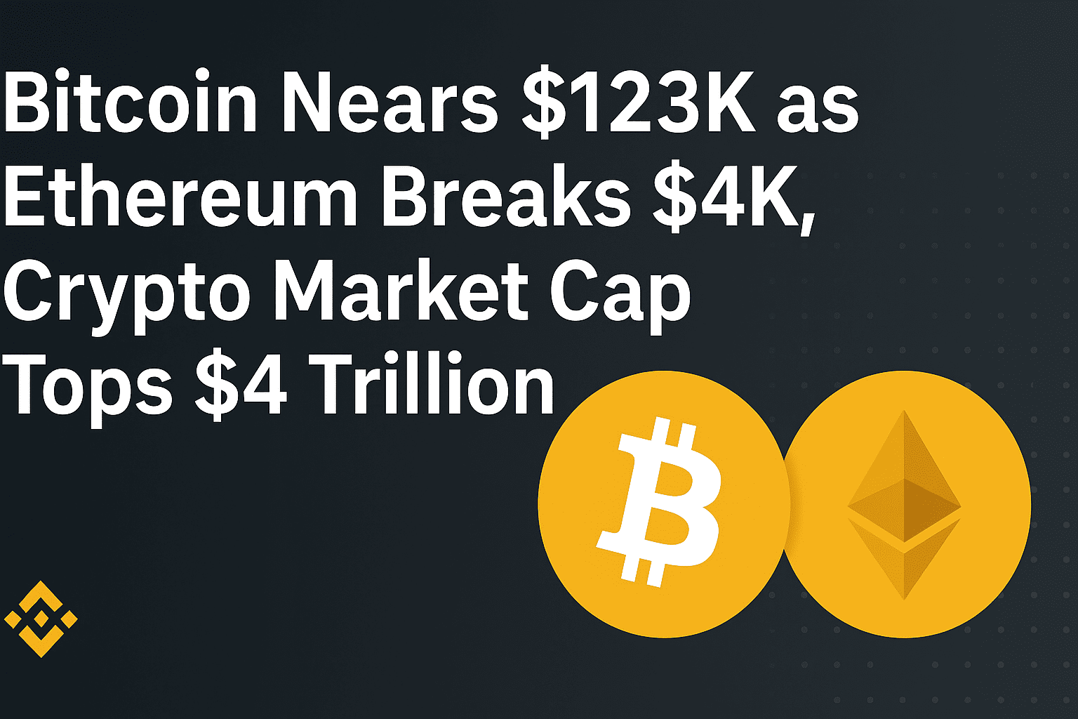 12 agosto 2025 — Il mercato delle criptovalute è in una forte ripresa, con Bitcoin che scambia vicino a $BNB 1.23000 ed Ethereum che supera i 4.000 dollari per la prima volta in otto mesi. La capitalizzazione di mercato totale ha superato i 4 trilioni di dollari, sostenuta da politiche americane favorevoli, crescente domanda istituzionale e importanti partecipazioni aziendali.