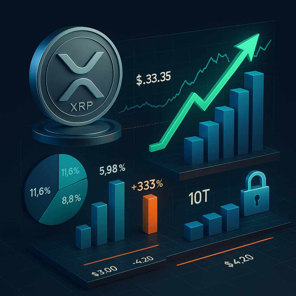 I livelli di dominanza XRP identificati al 5,92%, 8,87% e 11,61% rappresentano livelli critici di breakout. Con una proiezione di market cap crypto globale a 10 trilioni USD, XRP potrebbe matematicamente raggiungere una valutazione a doppia cifra.