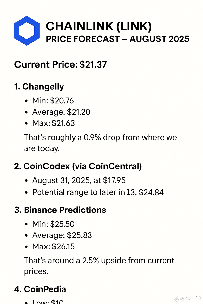 Le previsioni variano ampiamente, $LINK da $10 a $26. Il sentimento di mercato, le tendenze di adozione e le condizioni più ampie delle criptovalute determineranno infine il risultato. Rimani informato e prendi le tue decisioni!"