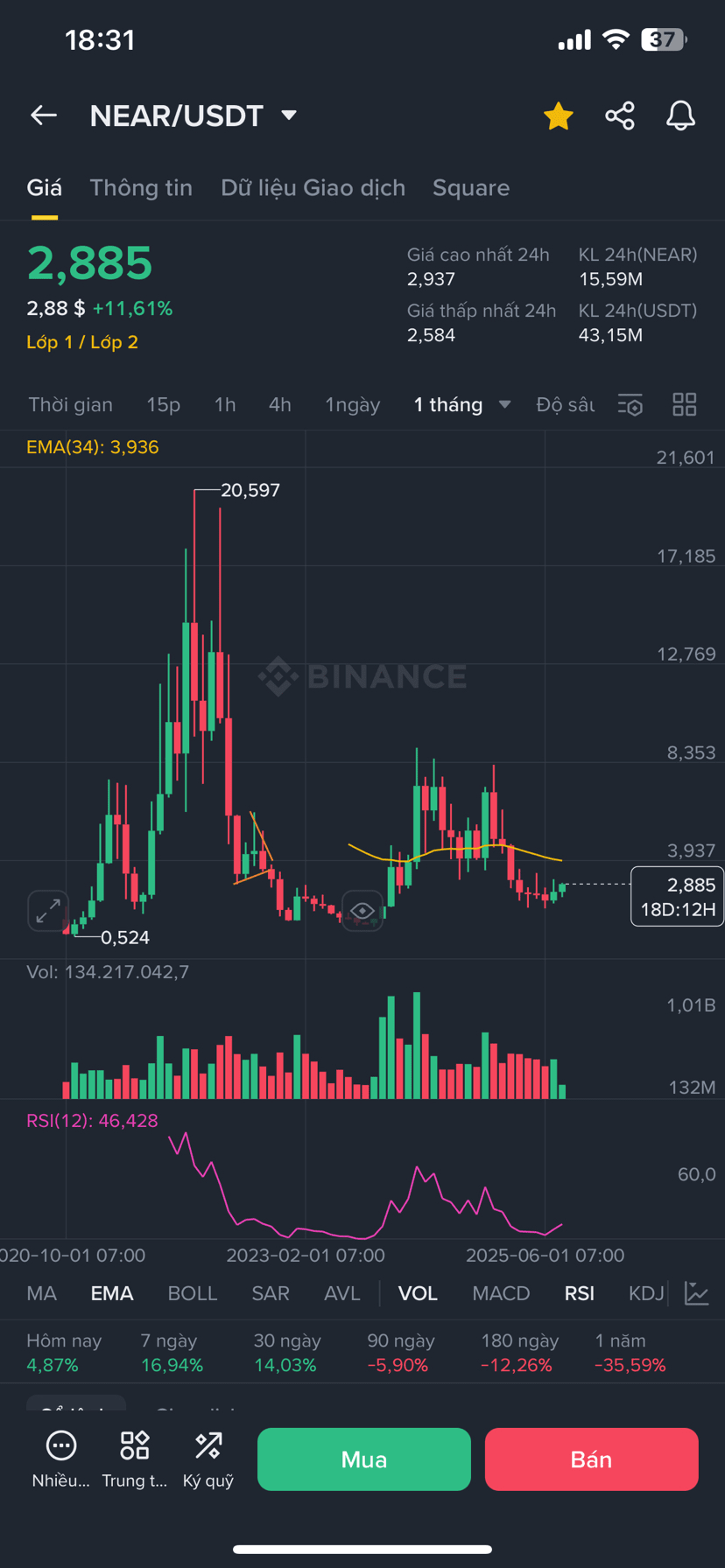 • EMA34: $3,936 (il prezzo è ancora sotto EMA34 → la tendenza a lungo termine non ha ancora confermato un'inversione).