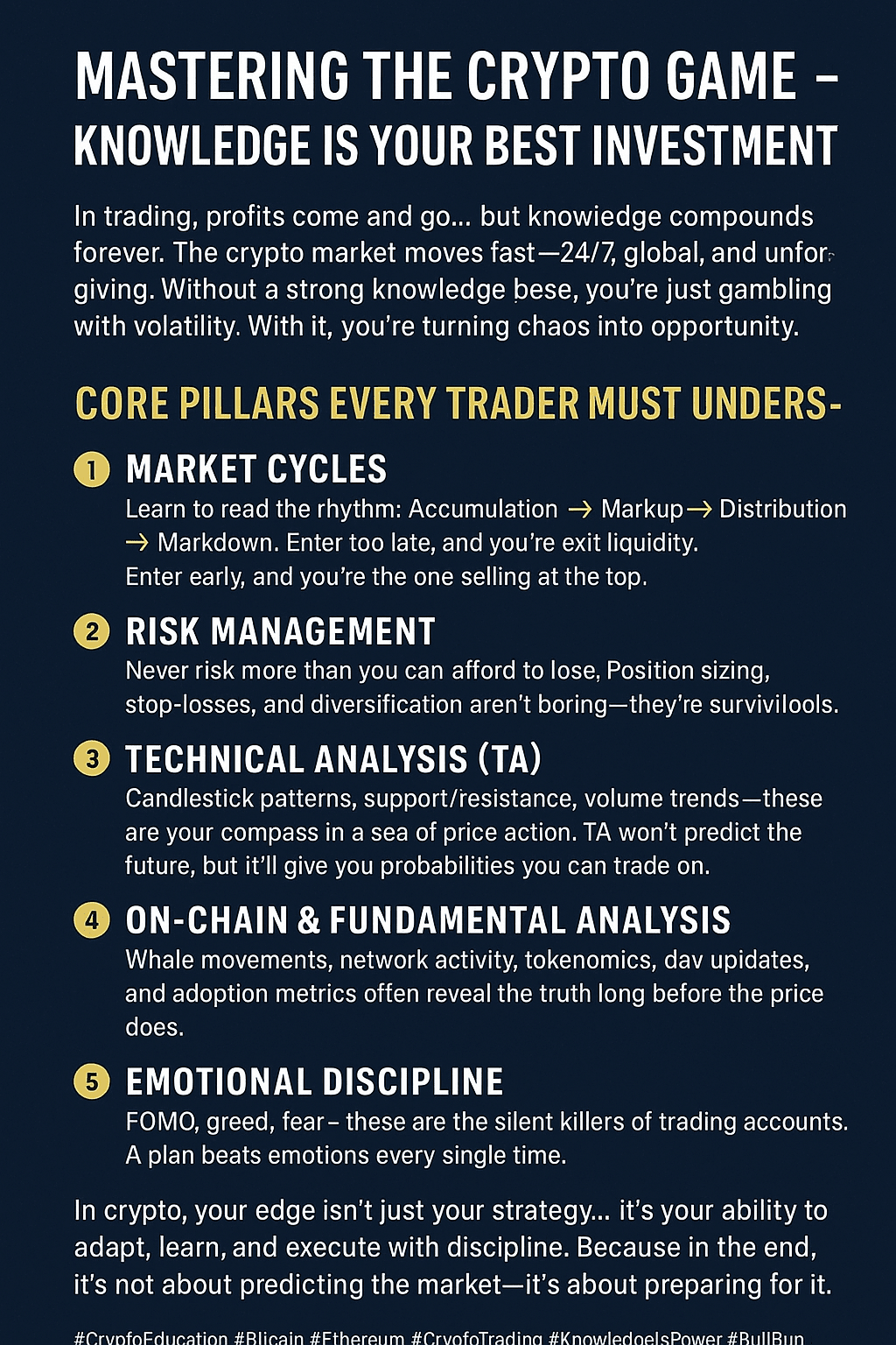 Il mercato delle criptovalute si muove veloce—24/7, globale e spietato. Senza una solida base di conoscenza, stai solo scommettendo sulla volatilità. Con essa, stai trasformando il caos in opportunità.
